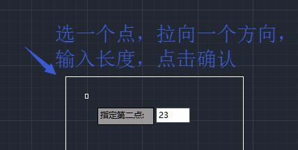 2、选一个点,拉向一个方向,输入长度,点击确认;(我输入的墙体是23cm)我拉动的方向一般是北往南拉,垂直下来;
