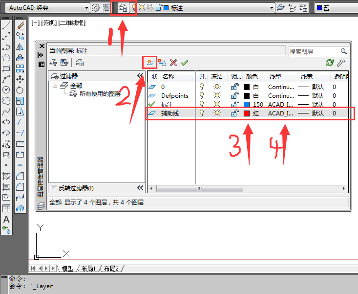 2、新建辅助图层。既然是辅助线,所以新建一个辅助线图层。点击图层管理器,点击新建图层,选择线性颜色(随意,与主图层区分开来就好),点击线性加载并应用