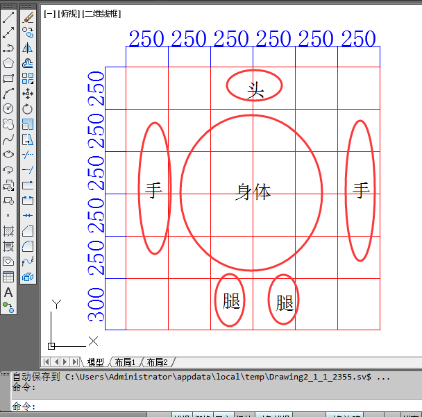 3、搭建辅助框架。小编在对大白研究过后最终搭建了以下辅助框架,具体长度如标注图层所示