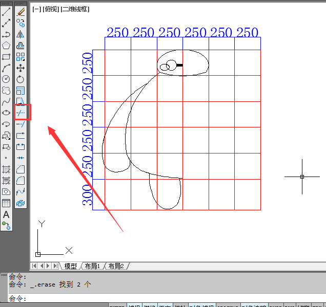 7、删去多余的线段。点击修剪工具,将多余线段删除。