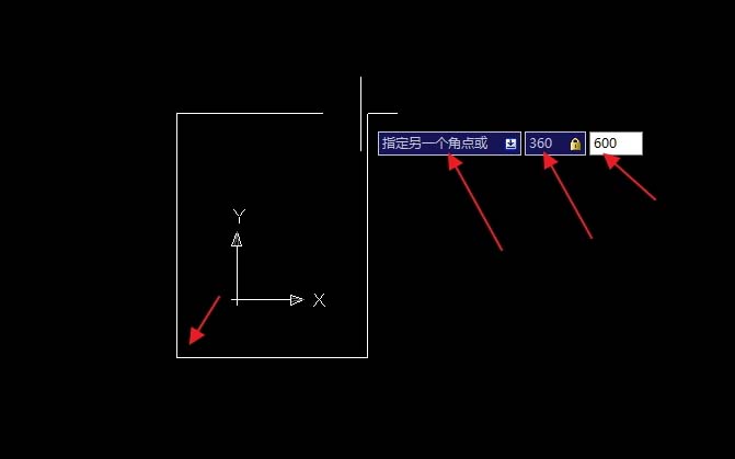 2、在二维绘图界面下绘制镜面基本框架形状,用矩形工具绘制,点击界面并输入参数,得到600x360的矩形框。