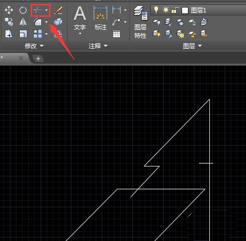 6、使用修剪命令将多余的线修剪掉,如图所示: