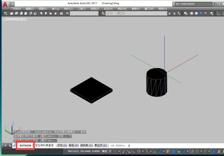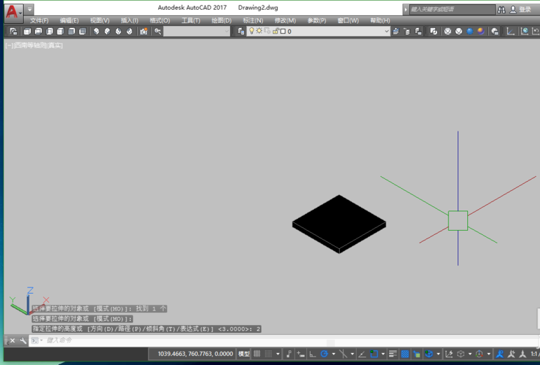1、首先,在Cad中绘制一个矩形,然后通过三维拉伸命令(EXT),输入拉伸的高度,这里为2,将其拉伸为三维实体。
