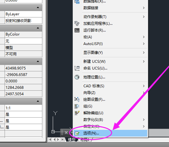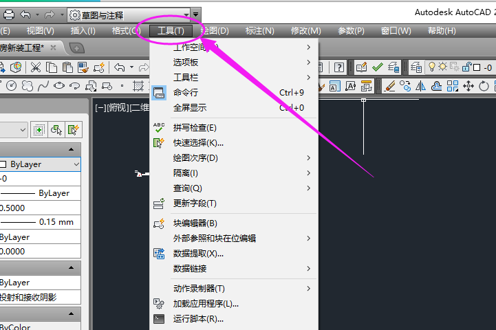 2、点击CAD菜单栏上的“工具”选项,然后会弹出一栏下拉选项,如图所示。