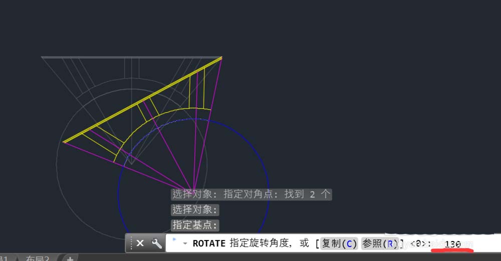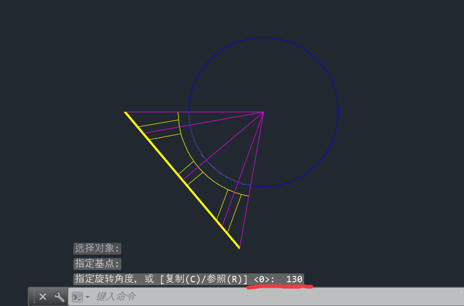 3、输入指定的角度值,则所选对象将绕指定基点进行旋转。这样旋转操作就完成了。