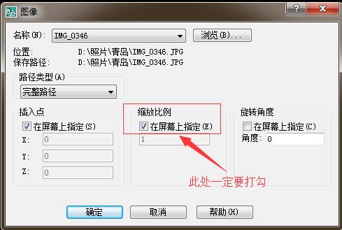 3、这时会弹出“图像”对话框,在路径类型这里设置好路径后(选择完整路径),然后在缩放比例处的在屏幕上指定前打勾,最后点击确定。