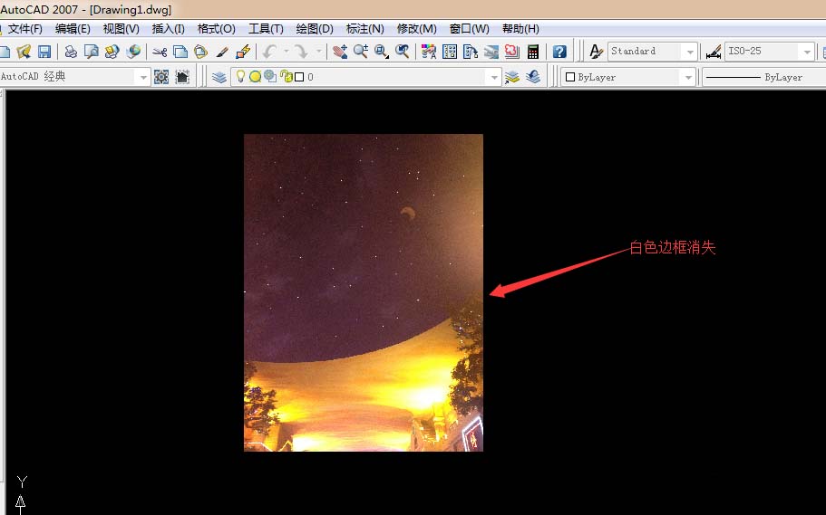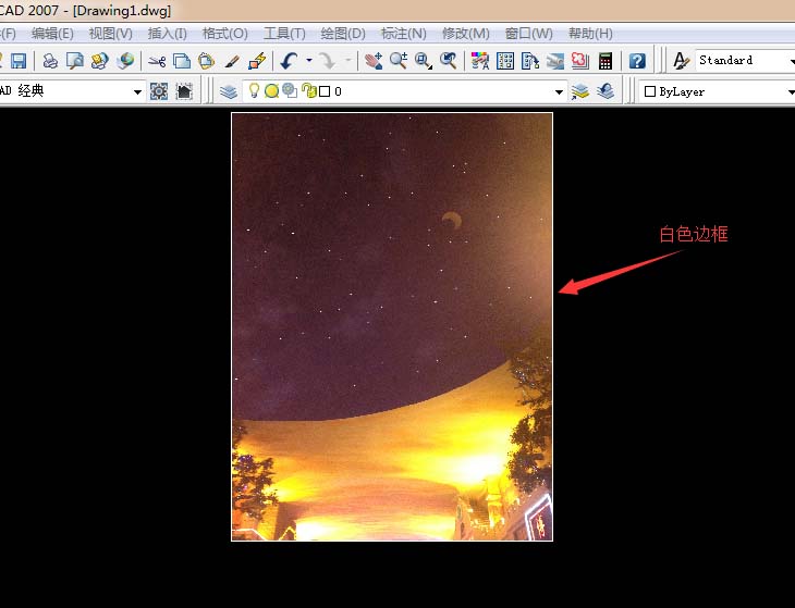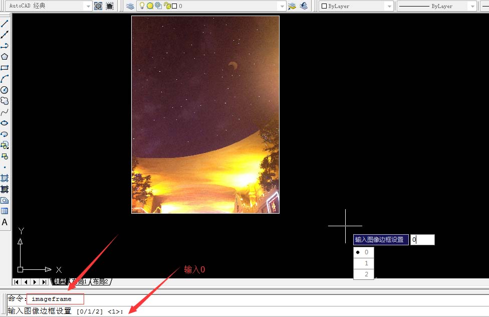 7、首先在命令栏里输入“imageframe”后按Enter回车键,接着出现“输入图像边框设置”后输入数字0再按Enter回车键,这样图片四周的白色边框就消除掉了。