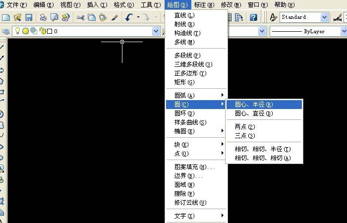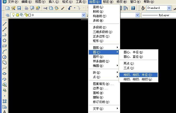 3、清除画布上的线,接着,鼠标左键单击菜单下的【绘图】>>【圆】>>【相切、相切、半径】,如下图所示。