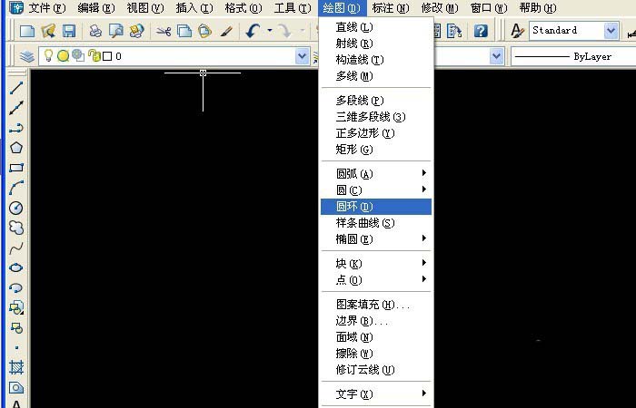 5、清除画布上的线,接着,鼠标左键单击菜单下的【绘图】>>【圆环】,如下图所示。