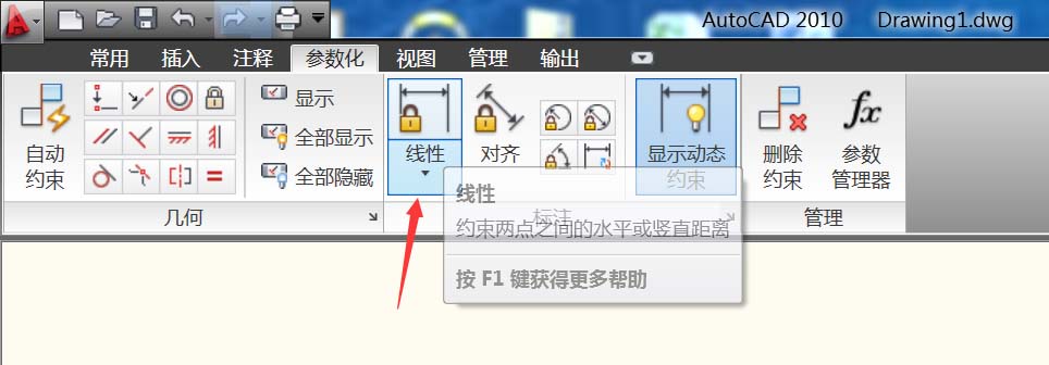 3、点击参数化-标注,开始使用此功能。