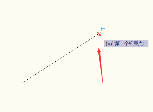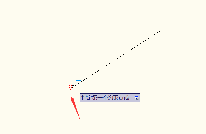 4、指定第一个约束点,我们就点击直线的一端。