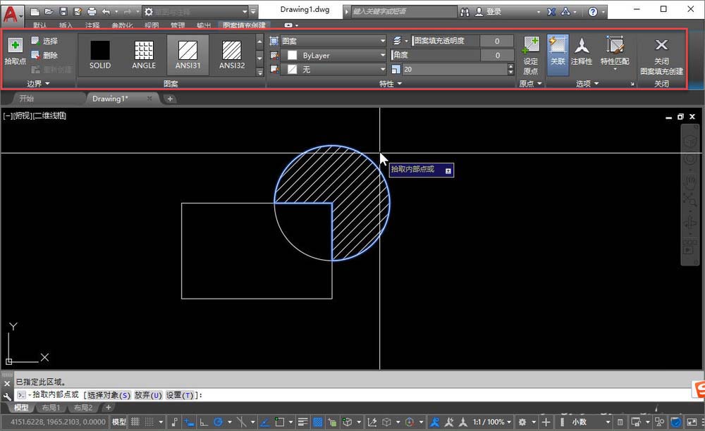 4、HPDLGMODE=2功能区面板显示的时候就在面板中显示填充选项卡,面板关闭或经典界面时就显示对话框。如果你想创建填充时一直使用填充对话框,就将HPDLGMODE设置为1就好了。