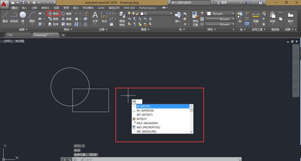 1、启动CAD后,在工具栏中单击十字箭头符号标志,或输入命令MOVE(可简写输入M,如果不是就多输入几位)启动移动命令。