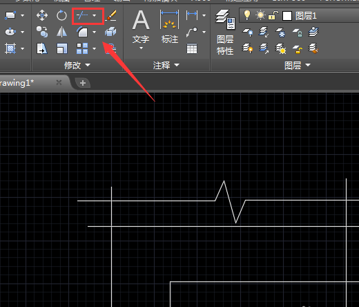 6、使用修剪命令将多余的线修剪掉,如图所示: