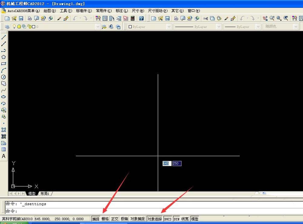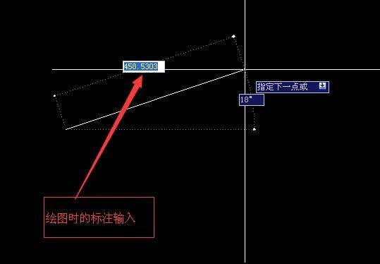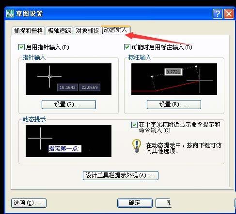 5、在“动态输入”选项,我们都打上对勾。指针输入就是在我们绘制直线时,十字光标出会显示尺寸,我们可以通过这里改变绘制长度。标注输入和指针输入的区别可以通过下图区分。