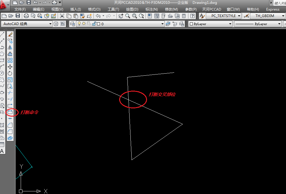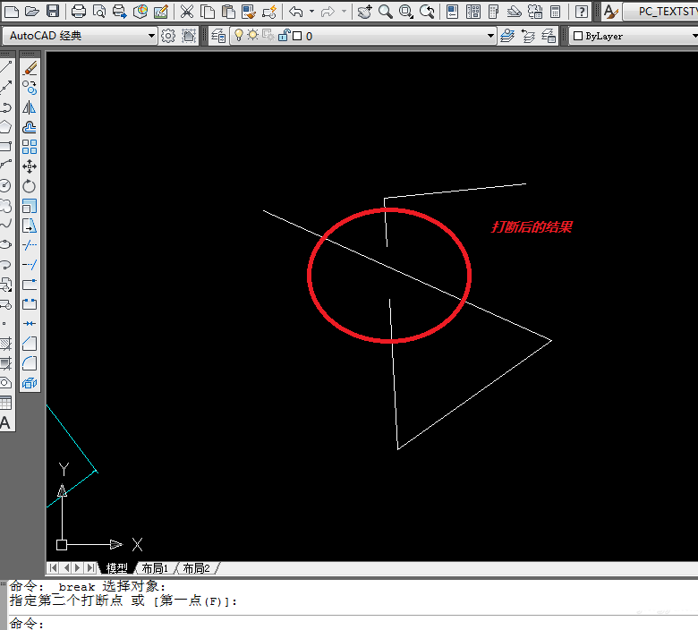 CAD怎么将连续的线打断于某一点?