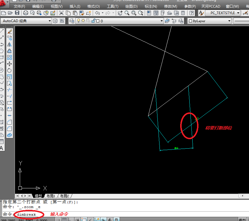 1、输入命令“dimbreak”;
