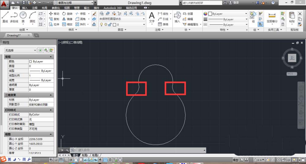 4、然后依次点击两个圆,enter就行了。两边都倒要做两次。