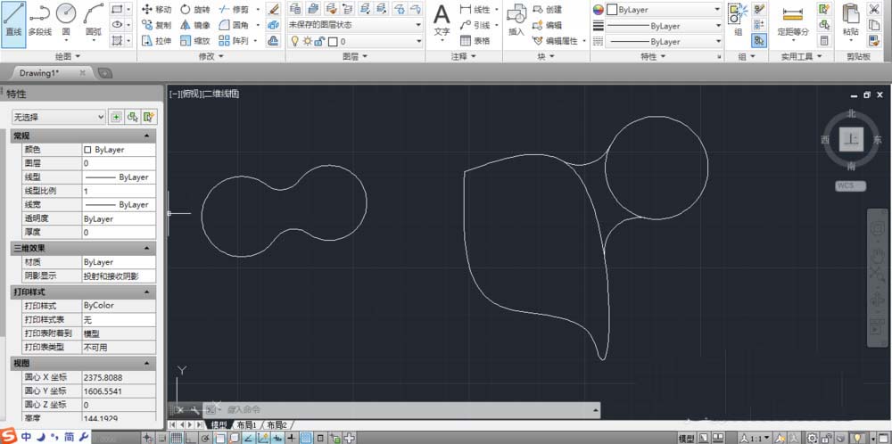 5、对于未相交的两个圆或曲线,也可以用同样的方法倒圆。