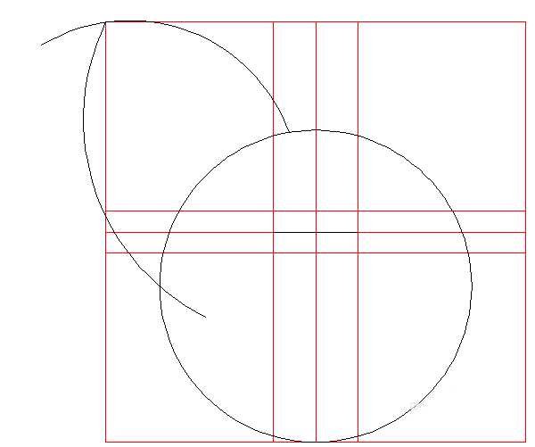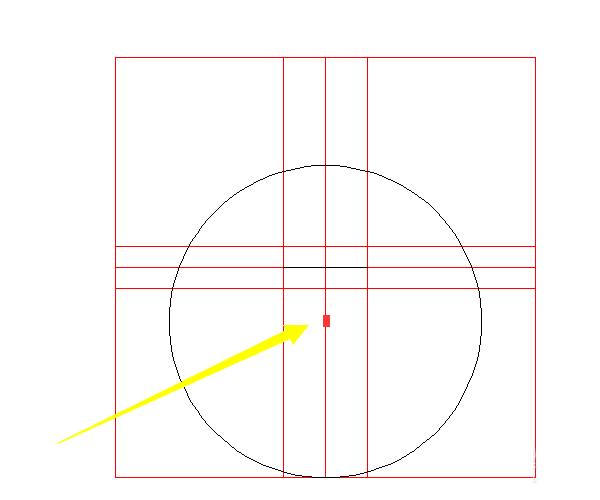 2、以图中红点位置为圆心画圆(圆主要是为了确定阿狸的大脑袋的位置)