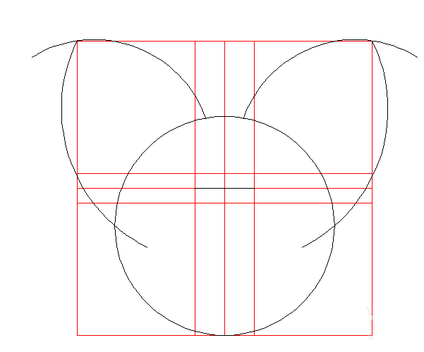 3、利用圆弧画出阿狸外耳的轮廓,注意相交于辅助线角上最顶端那个点