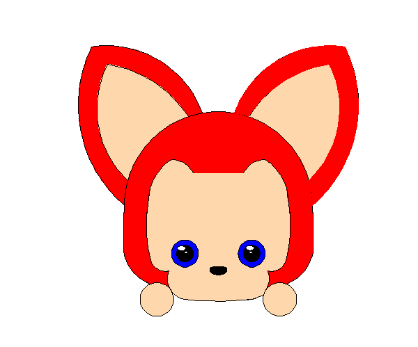 8、镜像将阿狸下颚对称过去,阿狸整体头部轮廓出来了。