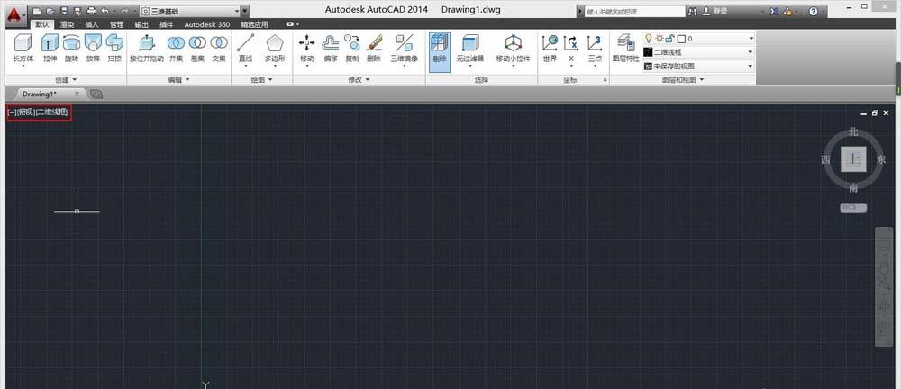 1、一般我们进入CAD时都是处于二维图形绘制的界面,因此我们首先需要进入三维图形绘制模式。如图模式的切换在图中左上角部分。