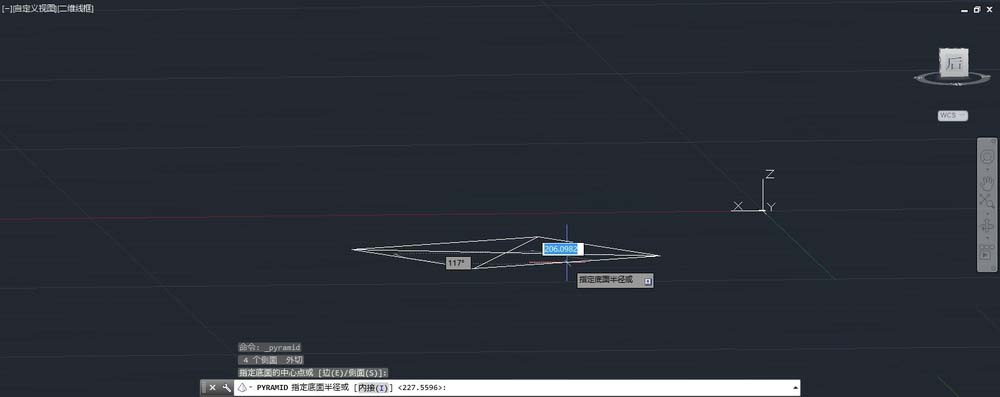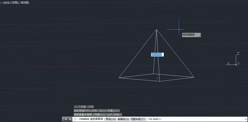 4、然后我们需要选择棱锥体的底面中心。(这里是三维的坐标,也可以分别输入x,y,z的数值确定坐标)
