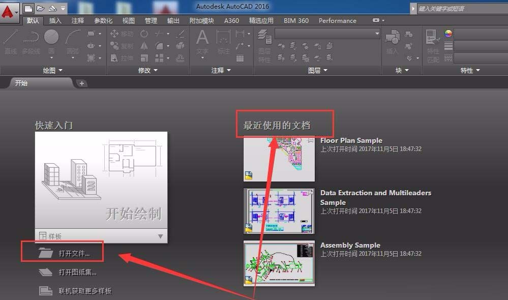 2、打开软件之后,在左侧部分可以建立新的绘图区,也可以打开之前已经做好的绘图文件。在右侧可以看到最近使用的文档。