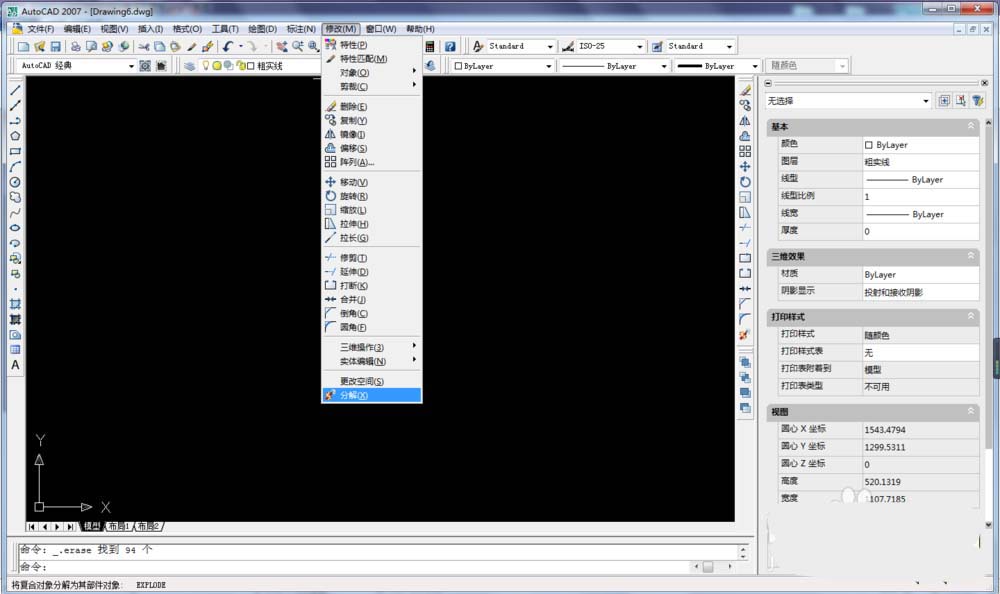 2、在工具栏中找到【分解】命令图标,当然了,你也可以使用快捷键x,或者执行【修改】-【分解】,这三种方式都可以激活分解命令。