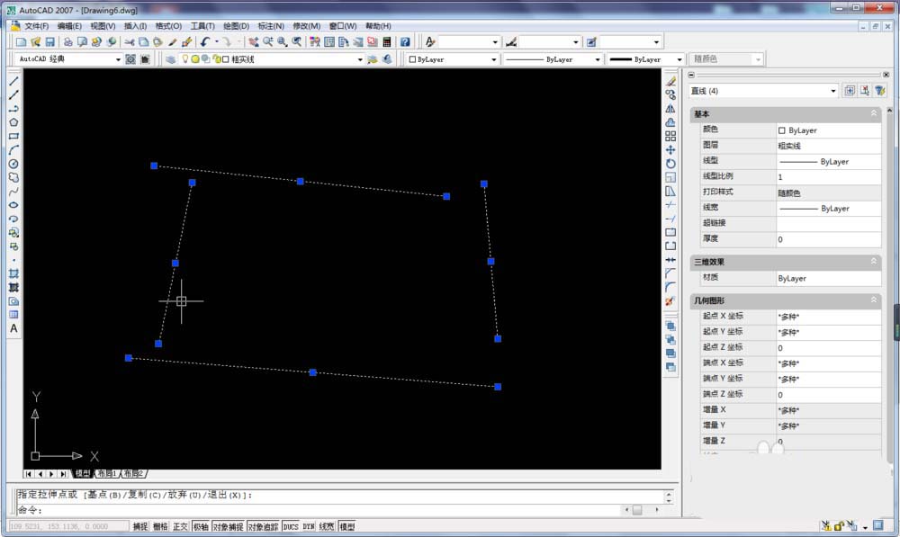 9、选中分解后的矩形,拉动夹点,这就明显可以看出分解前后的区别了。
