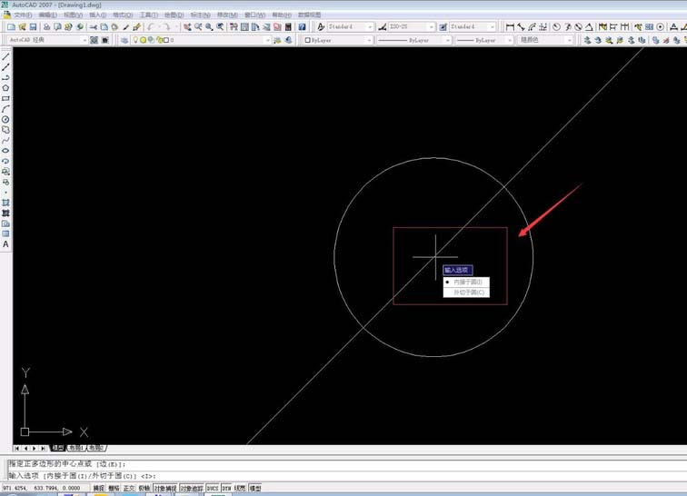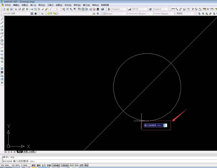 6、输入多边形边数4按空格,捕捉圆心。