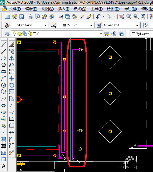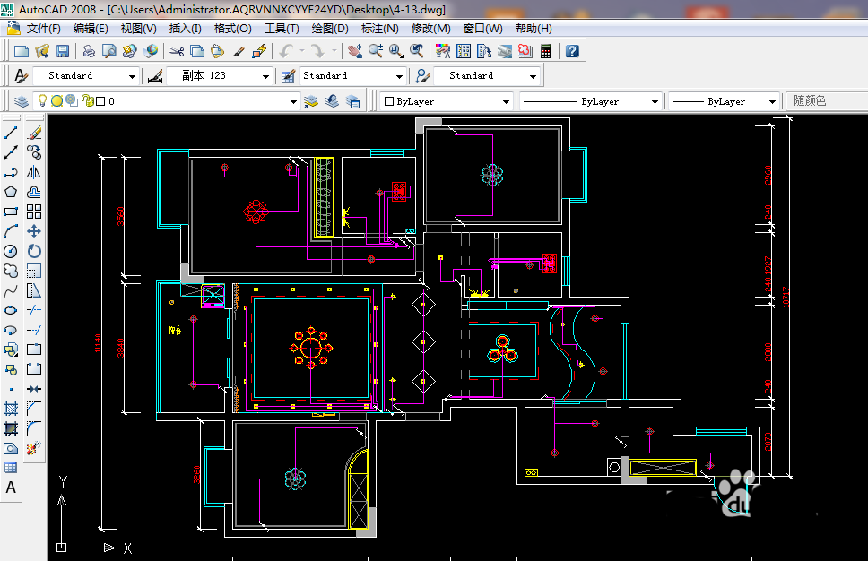 11、这里就画完整套间的开关布置图了。