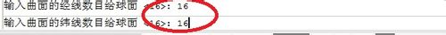 5、在命令区依次输入球面的经、纬线数目。(以16、16为例)