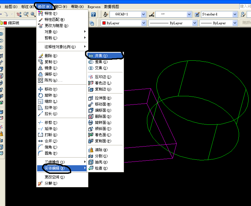 1、选择修改--实体编辑--并集