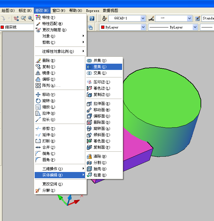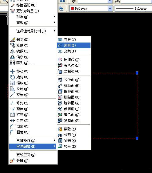 3、选择修改--实体编辑--差集
