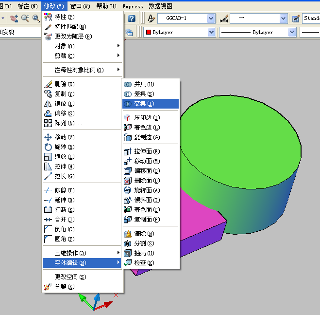 5、选择修改--实体编辑--交集