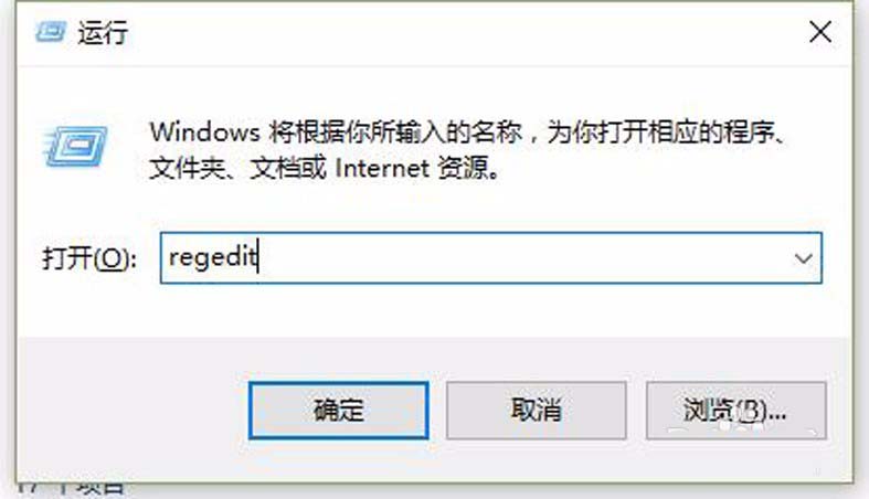 3、待安装程序删除完毕之后,点击键盘上的“微软+R”键调出“运行”对话框,然后在里面输入“regedit”命令,进入注册表,如图
