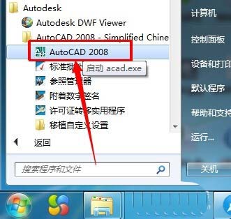 1、首先单击开始-autocad2008软件。