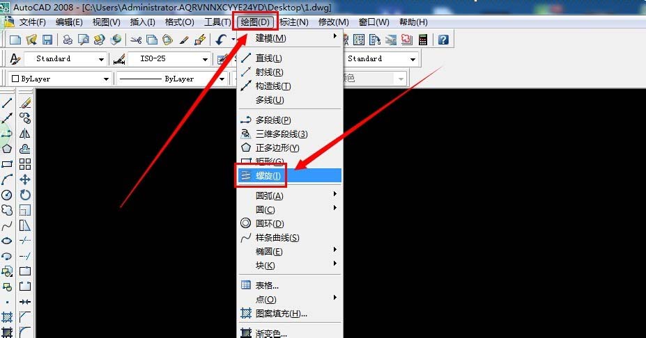 3、单击绘图之后在出现选项,在单击螺旋。