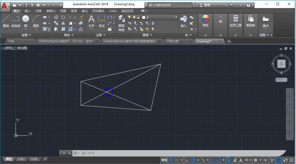 2、选中要移动到原点的点。如图中,中间交点。