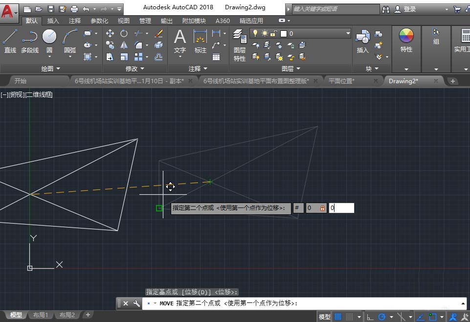 4、在CAD2017等高版本里,移动默认的是相对坐标,所以我们要输入绝对坐标,只需r按原有步骤,并改为输入绝对原点坐标(#0,0)就行了。