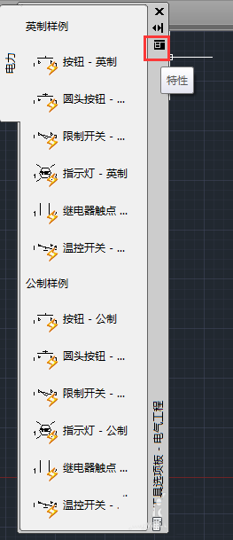 6、点击【电气工程】工具选项面板右侧的特性按钮,可以对面板进行相应的调整设置。
