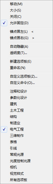 2、接着在弹出的级联菜单中勾选【电气工程】命令组,如图所示。