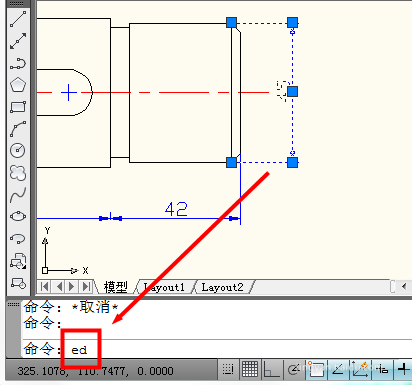 2、选中cad修改标注尺寸的标注,然后在cad命令行中输入ed,按回车键确认。