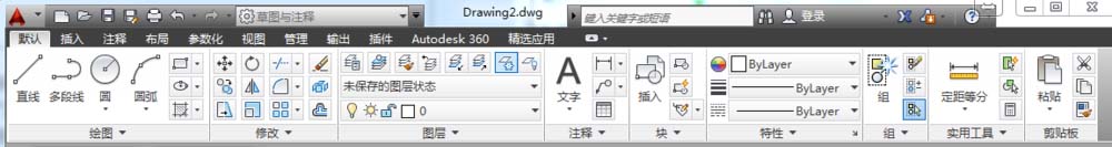 该工作空间主要用于绘制二维草图,是最常用的空间。在该空间中,系统提供了常用的绘图工具、图层、图形修改等各种功能面板,如图所示。