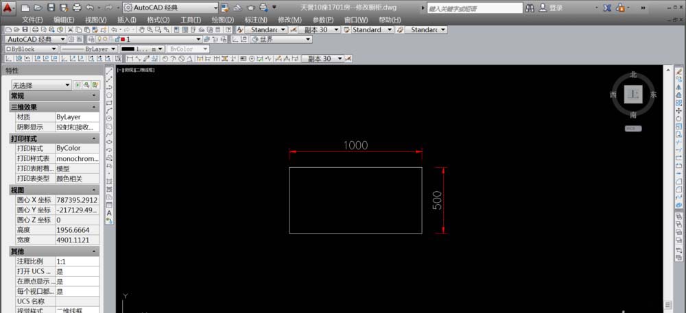 1、在cad上面,画一个框(快捷键REC),然后在屏幕上随意点一个点。再点击键盘“D”,填写尺寸。例如1000*500。如下图