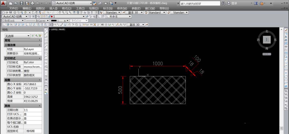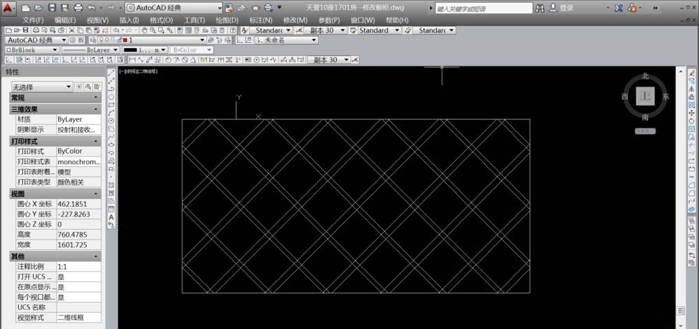 7、然后左边的斜线也一样复制,再将所以的线,(以内空为100*100)复制整个框内。如下图。在复制所的线时,鼠标“管理用户坐标”依旧要保持45°角。复制数据填写118。