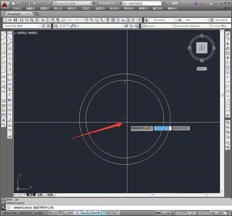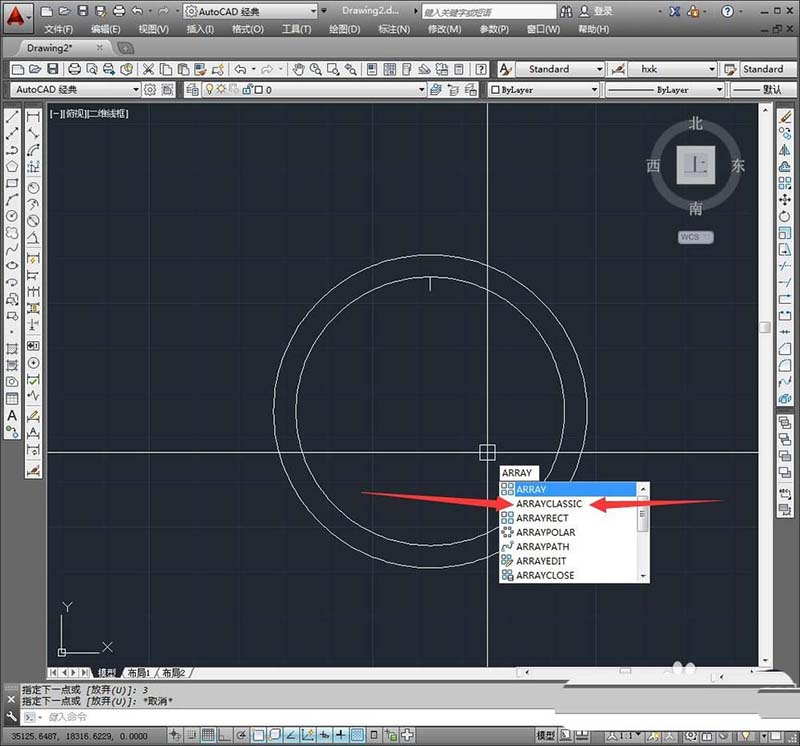 4、要想使用环形阵列就需要调出阵列参数面板进行设置是很方便的,直接输入命令“arrayclassic”后空格键确定就能看到。