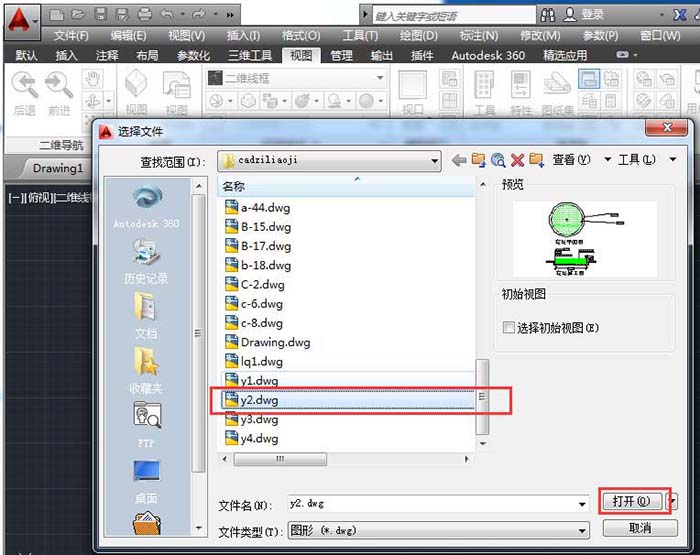 2、通过菜单选项【文件】》【打开】方式载入需要的cad文件。
